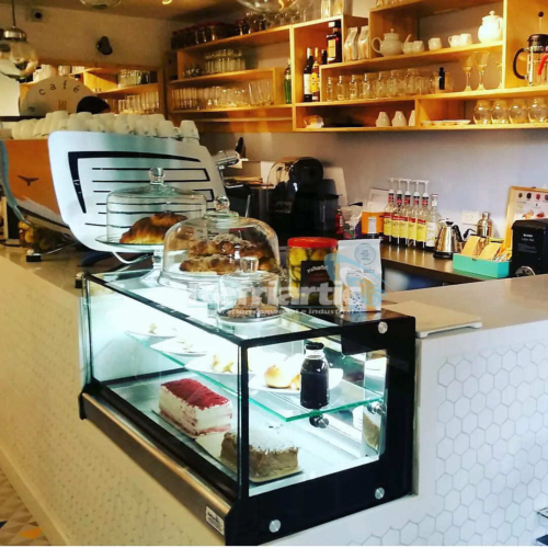 - Vitrinas sobre mostradores en refrigeración, calefacción y neutro.